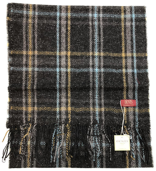$45.95| /DENTS Woven Checked Scarf w Fringed Edges Wool Blend MADE IN ITALY - Charcoal