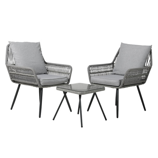 Original price $316.99Current price $219.95| /Gardeon 3PC Outdoor Furniture Bistro Set Lounge Setting Table Chairs Cushion Patio Grey