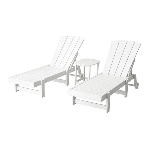 Original price $782.99Current price $550.95| /Gardeon Sun Lounge Lounger Table and Chairs Beach Chair Adirondack HDPE Patio Outdoor Furniture Wheels White