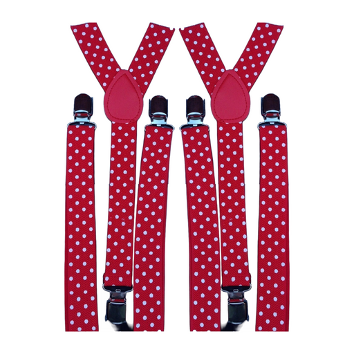 Original price $39.90Current price $22.95| /2x Mens Suspenders Braces Adjustable Strong Clip On Elastic Formal Wedding Slim - Red with White Polka Dot