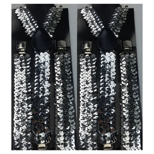 Original price $39.90Current price $22.95| /2x Mens Suspenders Braces Adjustable Strong Clip On Elastic Formal Wedding Slim - Silver (Sequin)