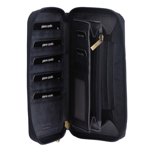 Original price $110.00Current price $60.95| /Pierre Cardin Stich Design Leather Ladies Large Tri-Fold Wallet in Black