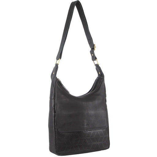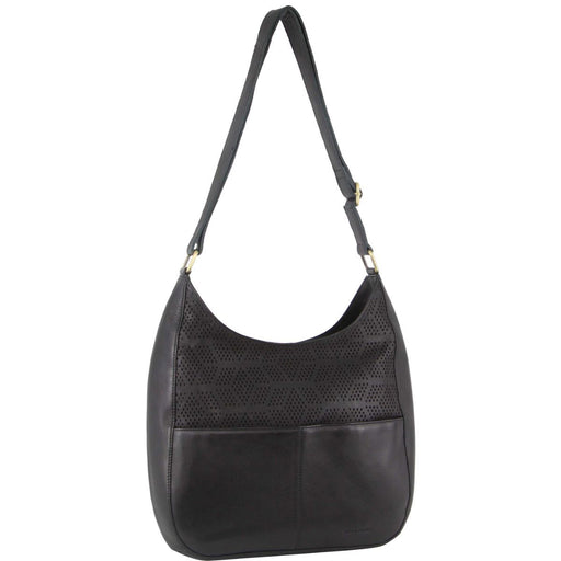 Original price $264.00Current price $144.95| /Pierre Cardin Womens Leather Perforated Shoulder Bag with stud Detailing - Black
