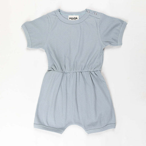 $45.95| /Ponchik Babies + Kids - Ribbed Cotton Romper - Capri Blue - 0-3 months