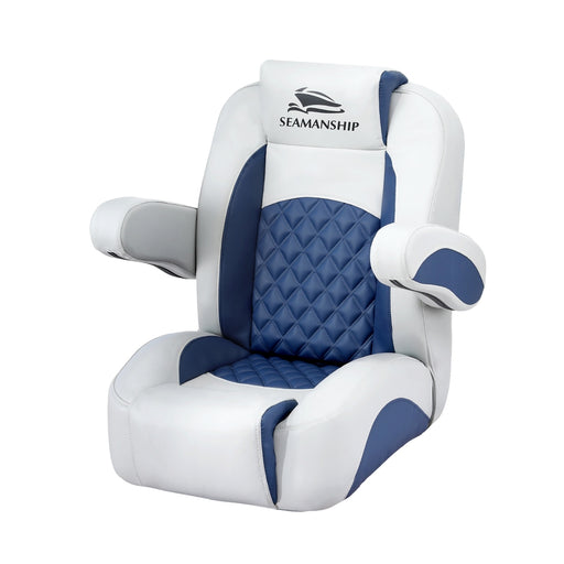 Original price $599.99Current price $421.95| /Seamanship Captain Bucket Boat Seats Flip Up Bolster Swivel 15cm Padding Blue
