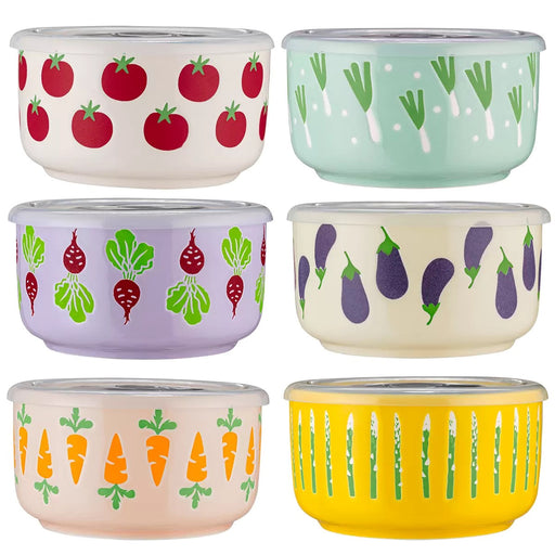 Original price $150.00Current price $104.95| /Signature Ceramic stoneware 6 Bowls With Lids 488ml BPA Free Veggie 12pcs set