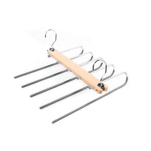 Original price $31.96Current price $14.95| /Silver 5in1 Wooden & Solid Metal Magic Hanger Pant Tie Rack Save Space Non Slip