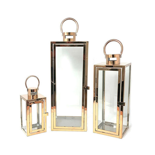 Original price $220.99Current price $182.90| /Stainless Steel Glass Lantern Candle Holder 3pcs Set Silver Copper Black