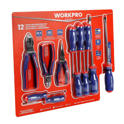 Original price $69.90Current price $59.95| /Workpro High Leverage Pliers And Screwdriver 12 Piece Set Bi-material Handle