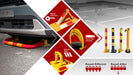 Rubber wheel stop for garage floor or parking blocks, include highly reflective yellow tape, to ensure visibility and pedestrian safety. Wheel Stop as Parking Aid and Stops the Tires, acting as Rubber Parking Curbs that Protect Vehicle Bumpers and Garage Walls.