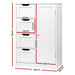 Featuring a MDF construction the storage cabinet comprises of four drawers and two