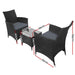 Gardeon 3PC Outdoor Bistro Set Patio Furniture Wicker Setting Chairs Table Cushion Black