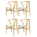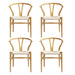 1 Set of 4 Artiss Dining Chairs Wooden Rattan Seat Wishbone Back