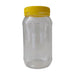 Round plastic empty food grade jars with yellow tamper evident lids, commonly used for packing food products and items such as beads, crafts, decorations, honey, grains, beans etc.