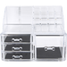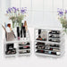 Crafted with durable material, this 11-drawer rack nevertheless has a dainty, beautiful look. It is made with acrylic plastic and comes in four pieces per set. Its compact design makes things easy. This organiser can also be combined with other sets and you can configure it in a variety of ways. Want to make your beauty routine clear as day? Get yours today!