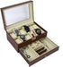 - Multi-functional Boxes: Two levels display case, first level includes 12 removable velvet pillows, second level is a jewelry tray. Suits for storing watches, jewelry, cuff links, spare links, rings, earrings, bracelets and necklaces.