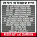 - 12 different types of hooks and organizers for a variety of hanging applications. Total 120 PCS