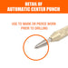 • Automatic spring loads then releases at top of cycle with force to create center punch (No Hammer Needed).