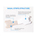 Nasal strips are made of flexible, spring-like bands that fit right above the flare of the nostrils. The underside is adhesive so that once positioned on the nose, they stop and stay there. As the bands attempt to straighten back to their original shape, they lift the sides of the nose and open the nasal passages.