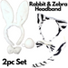 2pc Set Animal Headband w Bow Tail Rabbit + Zebra Ears Costume Halloween Party