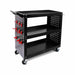 3-Tier Heavy Duty Steel Tool Trolley - Workshop Cart with Pegboard, Hooks and Locking Swivel Casters