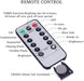- 8 Modes settings with Remote Control:13-key buttons: TIME Mode (6hours on and 18 hours off automatically cycle) 8 Modes: combination, in waves, sequential, slogs , chasing/flash, slow fade, twinkle/flash, and steady on Press DIM- or press DIM+ of remote control to adjust the brightness of the lights on and off.