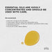 Safety: Essential Oils are highly concentrated and should be used with care. KEEP OUT OF REACH OF CHILDREN. Avoid contact with eyes, inner ears, and sensitive areas. If pregnant or nursing, consult your healthcare practitioner before using. Not for internal use. Do not use on skin without dilution.