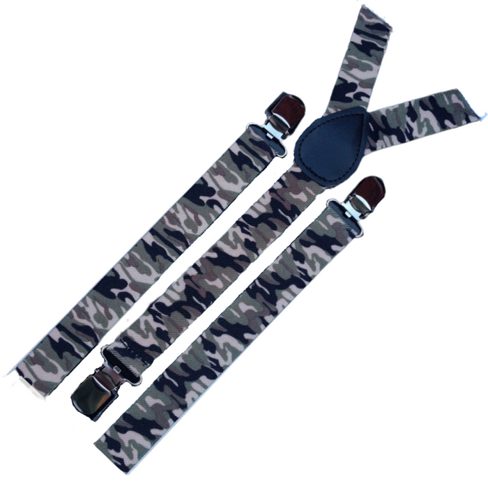 3x Mens Suspenders Braces Adjustable Strong Clip On Elastic Formal Wedding Slim - Army Camouflage