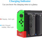 Charging Status Dispaly: When charging the Joy-Con controllers, the corresponding indicator will be red. The indicator will turn blue after fully charged
