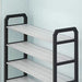 • Durable and Firm: The shoe rack has 4 steel tubes per layer, making it durable and long lasting, and has excellent load capacity, so it won't easily deformed even after long periods of use. Shoe Rack Joint: Made of environmentally-friendly PP plastic material with excellent abrasion resistance and stability, so it supports the pipe firmly and prevents it from swinging around.