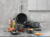 The set includes 2 frypans, 3 pots and 3 lids, providing a comprehensive solution for various cooking tasks. With a non-stick coating for easy food release and cleaning, this set promotes healthier cooking by minimising the need for excessive oils or fats.