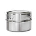 The jar has 2 dispensing shaker openings so you can monitor the rate at which the spices are poured. Made from durable stainless steel with transparent opening at the top of the lids so you can observe the contents inside.