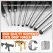 9 pieces roll pin punch set is made of highly quality hardened 40# steel, drop forged, heat treated & knurled steel for extreme durability, workability.