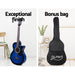 Alpha 38 Inch Acoustic Guitar Wooden Body Steel String Full Size w/ Stand Blue