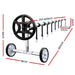 Keep your pool clean from debris and warm from the power of the sun with Aquabuddy's Aluminium Pool Roller and 6.5m x 3m Pool Cover. Made of sturdy aluminium construction with full adjustability, this pool roller is suitable for pool cover with a width between 2.1m-4.05m. It is equipped with premium anodized aluminium alloy stands, plastic wheels for maximum portability, and an exclusive non-slip spinning wheel design to easily roll up your pool cover and get right in the water. The solar pool cover is made from premium low-density polyethylene 500 Micron, which makes it extremely durable. What's with the blue top and silver underside, you ask? Well, the design allows the sun rays to penetrate the pool, increasing the temperature and significantly reducing water evaporation. Aquabuddy helps heat the pool easier and faster, and retain more heat in the pool for a longer time. Finally, the cover keeps the pool water clean all year round, reducing the time spent maintaining the water, pumps and filters. Save money, save time, save summer! Get the best of natural resources and save money on chemicals and water; get yourself an Aquabuddy Pool Roller and 6.5m x 3m Cover set today!