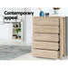 If you find yourself in need of some extra storage space, look no further than our practical and handsome Artiss MAXI 5-drawer Tallboy. With its effortlessly simple and contemporary design, this beauty is crafted from a 15mm thick particle board and a delightful, smooth natural wood grain finish that will easily match your existing home décor. It provides plenty of storage space with five generously sized drawers for all your personal essentials. The drawers are easy to open and close thanks to the anti-rust coated metal drawer runners that always ensure smooth operation, and the elegant double handles make it convenient to access the drawers without hassle. Anti-scratch floor protectors fitted at the base of the tallboy keep your floors in pristine condition with every use. Best of all, you can also match with other products from the Maxi series for the complete simple-natural look.