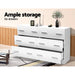 Practical and handsome, our Artiss 6-drawer Lowboy is perfect for those looking for extra storage space for your home. Contemporary and simply designed, this beauty features a flawless melamine finish with elegant handles that will easily match your home décor. Made with premium 15mm thick particle board with anti-rust coated drawer runners, our lowboy works ever so smoothly with minimum hassle. Not least, it provides plenty of storage space with six generous-sized drawers for all your clothing, fashion essentials and more.