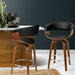 Wood, metal and deluxe PU leather in total harmony to create a luxe feel. Meticulously crafted with solid plywood with a stunning walnut finish for the frame, the bar stool features a thick padded faux leather seat that rotates fully, a mid-height backrest which provides ample support while the anti-slip floor protectors at the bottom of the legs ensure no scratches are left on the floor.