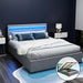 Artiss Bed Frame Queen Size LED Gas Lift Grey COLE