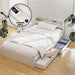 It's easy to sleep well on the Artiss Aura Bed Frame. Made from thick 15mm and 18mm particleboard with 12mm plywood slats and a white paper finish, the bed frame is designed for long-lasting use and longer-lasting sleep. The thick plywood slats and centre beams provide total support, and noise-free use, and improve the life of your mattress. It features a multifunctional design that allows you to use the bed for storage and to charge your phone overnight. Two drawers with smooth castor wheels can be installed on the left or the right for convenient storage. The headboard has smooth edges and plenty of room for your bedroom essentials. It also features two USB charging ports connected to a 200cm cable for convenience. While you power down for the night, you can power up with the Aura Bed Frame from Artiss.