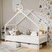 Artiss Bed Frame Wooden Base Kids Single Timber House with 2 Storage Drawers Beds White