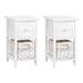 Artiss Bedside Table 1 Drawer with Basket Rustic White X2