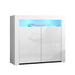 Wow all your houseguests at your dinner parties with our Artiss LED Sideboard. The sideboard comes with built-in LED lighting on the open display shelf that can be customised into different colours to suit your preference. Not only does this create a beautiful ambience, it creates the perfect setting to truly appreciate your collectibles. Crafted from 15mm thick particle board with melamine, this sideboard ensures longlasting durability. And it will be the perfect addition for your modern kitchen or dining room with its contemporary and linear design. Or you can keep one in the living room or the hallway, as the sideboard will suit any décor. The high-gloss cabinet doors have a handle-less design to maintain the sleek appearance and the four compartments in the cabinet in addition to the open shelf provide ample storage for all your kitchen, dining room and other essentials.