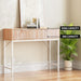 Introducing our elegant Artiss console table, crafted from MDF with a sleek melamine finish. Featuring a fluted front design, two drawers with metal handles, smooth metal runners, and sturdy metal legs with protective pads. Includes wall attachment for stability. Easy to clean and assemble.