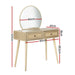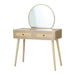 Complete your morning routine with the Artiss Frances Dressing Table. Made from 15mm thick particle board with a smooth melamine finish, real rattan drawers and solid rubberwood legs, the dressing table is designed to last through many early mornings and late evenings. With two generous storage drawers, you can fit all of your make-up, accessories and other health and beauty essentials. The anti-rust drawer runners ensure smooth opening every time. Splayed rubberwood legs keep the table stable and contribute to the generous 60kg weight capacity. The round mirror allows you to get up close and personal for skincare and makeup application and a full view of your ensemble when you're done. With the Artiss Frances Dressing Table, you'll always be ready for what the day brings.