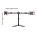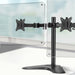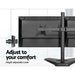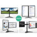 Add some extended mobility to your monitor with our Artiss Fully Adjustable Double Monitor Arm. With it, you can extend both arms up to 43cm to set your preferred viewing position and retract it with ease. Height adjustments can be easily done by twisting the height adjustment screw. It also allows you to swivel your monitor 180°, rotate it 360° or tilt it up to 45° and set in either landscape or portrait format. Using the detachable VESA mount, you can mount any monitor size of up to 32"* with a maximum weight capacity of 9kg on each arm. Plus, you can also fine tune the monitors' alignment with the VESA plate height adjustment. Other great features include a freestanding V-shaped base that does not need any drilling or clamping, cable loops for neat and tidy cabling and a tools holder for allen keys. Not least, made from heavy-duty steel, the monitor arms are designed to stand up to longlasting use without missing a beat. All the necessary mounting hardware and an assembly manual are included in the package for a hassle-free set up.