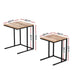 With its industrial-inspired design, our 2-piece Artiss Nesting Side Table is unlike your by-the-numbers side tables. It consists of two tables of different sizes so that depending on your needs, you can use it as two separate side tables or neatly nest the smaller under the larger to form a single table and save space. The sleek, powder-coated steel legs blend perfectly with the beautiful rectangular natural woodgrain top for a rustic ensemble that will sit well in any room and with any d�cor. And the thick tabletop is chunky and strong for all intents and purposes. Better still, the C-shape profile allows the nesting side table to be brought up close and slide into other furniture pieces without any encumbrances or hassles. Made with sturdy construction, the nesting side table is also fitted with anti-scratch floor protectors to keep your floors in pristine condition with every use.