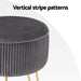 Round velvet Artiss footstool with vertical stripe design, durable MDF frame, and high-resilience foam padding. Features protective metal legs and simple assembly.