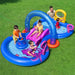 Under the sea! Let your kids and friends have a splashing great time with the Fantastic Splash Pool. Featuring a wonderful play area with an deep sea theme, the pool has a fun slide and plenty of interactive play with an inflatable coral basket and a submarine porthole ball sorting wall with 4 play balls. Attach the garden hose to the water sprayer and your kids will have an even more wet and wild time in this ensemble. Everything is made child-safe with the sturdy pre-tested vinyl. Filling and draining is easy with the drain valve attached to any garden hose and a repair patch is included.
