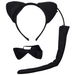 BLACK CAT EARS HEADBAND w Bow Tail Animal Costume Halloween Party Hair Accessory